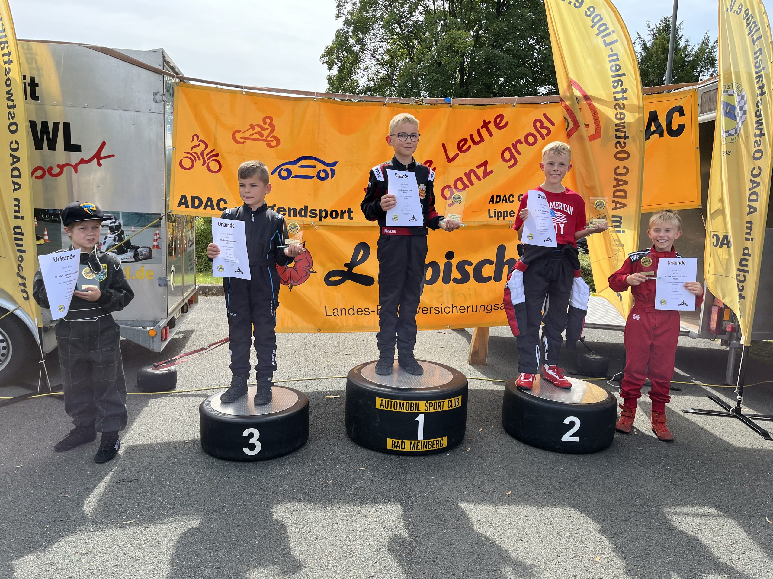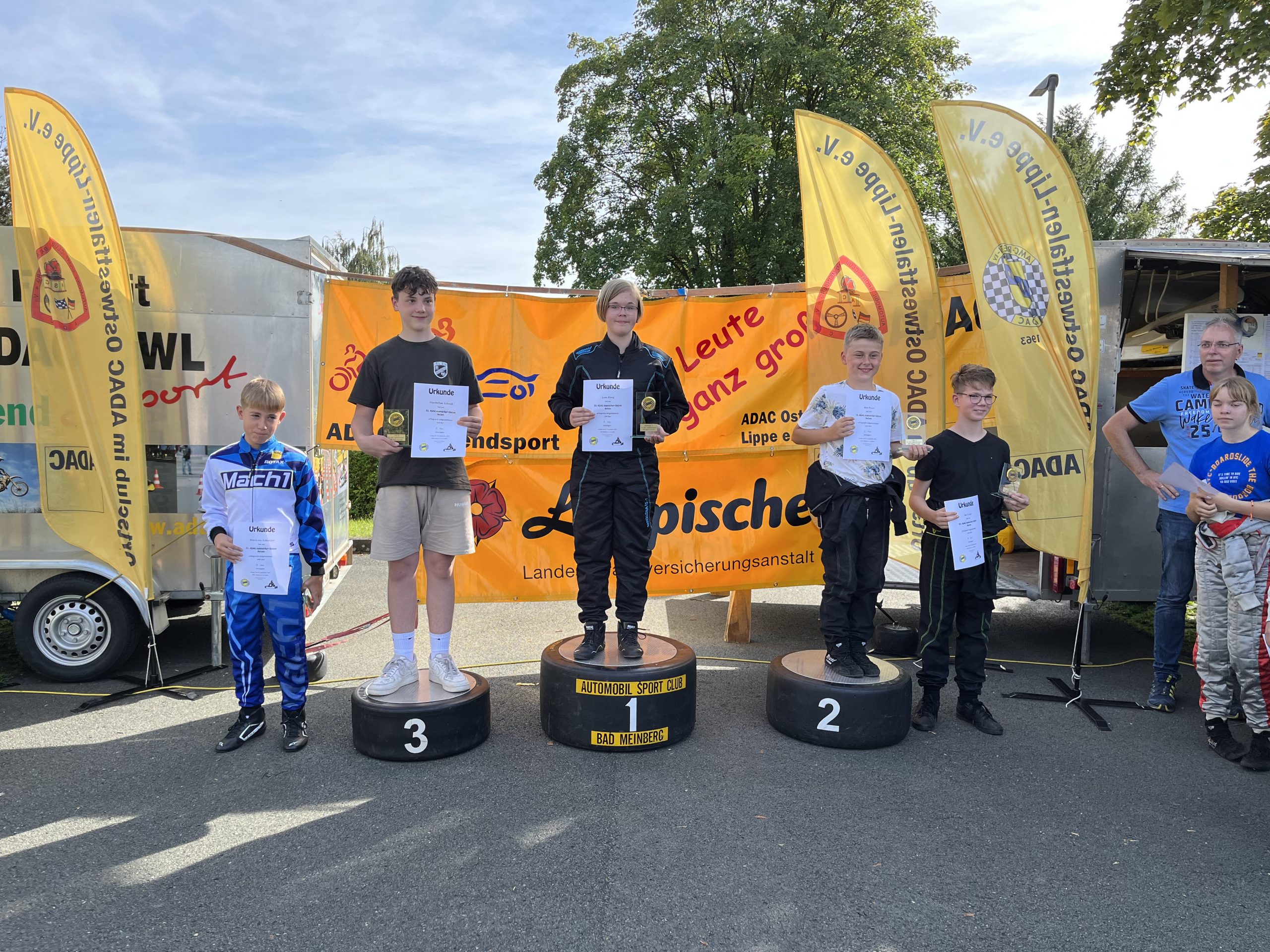 In der Klasse 1 konnte der Meisterschaftsleader Vincent Rieso seiner Favoritenrolle leider nicht gerecht werden. Insgesamt 5 Pylonenfehler in beiden Läufen reichten aber immerhin noch zu Pokalplatz 4. Direkt davor holte sich Milian Stähler mit dem dritten Platz seinen erste Podiumsplatzierung. Jannes Wirth fuhr auf Platz 6 und Neumitglied Nathan Friesen erreichte Platz 12. Den Sieg sicherte sich Theodor Hoppe vom AC Höxter.
